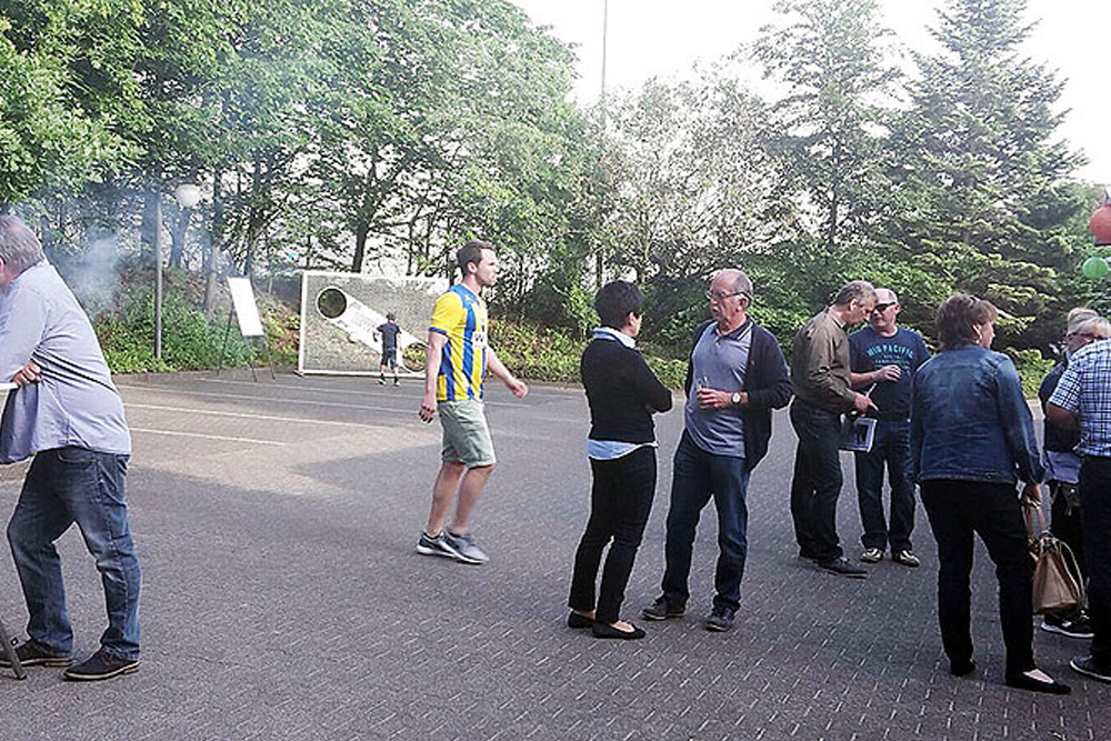 Musikalisch wurden wir dabei hervorragend von den Swing Partners begleitet. Frisches Bier vom Fass und leckeres Essen vom Grill rundeten alles perfekt ab. Unsere Gäste waren so begeistert, dass sie die aufgestellten Spendenboxen großzügig für einen guten Zweck füllten. So kamen dadurch 243,80 Euro an Spenden zusammen, die von uns sehr gerne auf 500 Euro aufgestockt wurden. Durch die Großzügigkeit unserer Gäste konnten wir so am 17.06.2016 dem Verein Strahlemännchen e.V. eine Spende in Höhe von 500 Euro überreichen ➞ Pressebericht